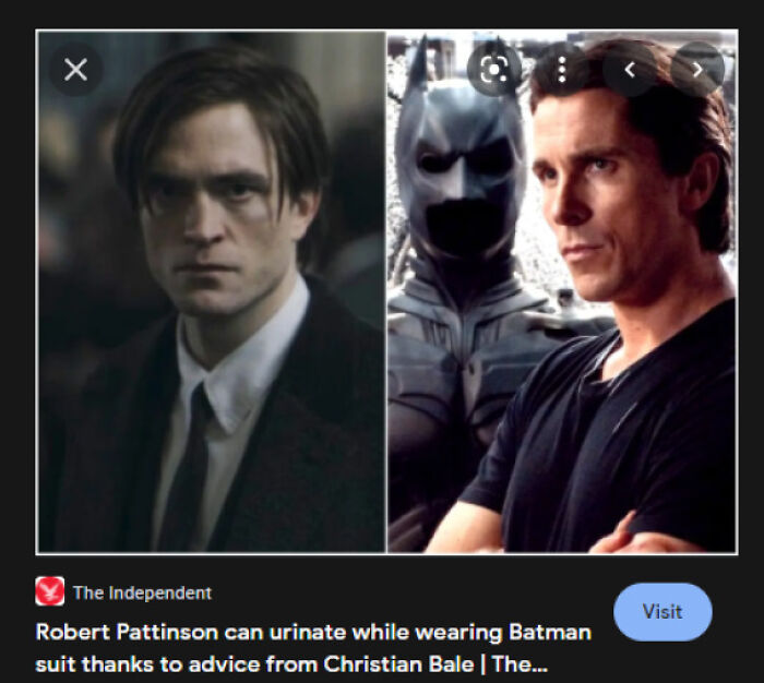 With yellow liquid burning and streaming down Robert’s leg, he wondered if he was going to live through the event. Sadly for him, it wasn’t looking too good. With all his strength, he managed to mutter out the words: “Thanks Christian.” And soon, the Dark Knight fell on to the ground in a puddle of unidentifiable yellow warm liquid.