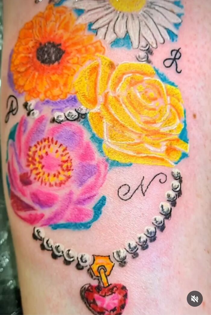 That's a tattoo? Looks like a kid slapped her with a muddy hand that is missing a finger.