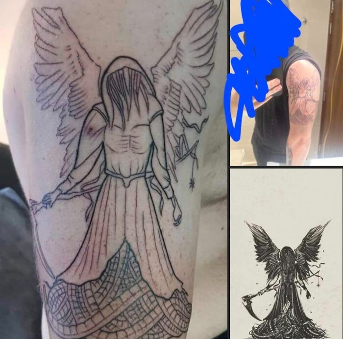 The point of the group is to discuss the quality of tattoo application and art design, not tease the people who got them or inked them. That’s why there’s zero tolerance for harassment or leaking someone’s face, identifying details, shop name, or social media handles. All of this info has to be censored. Meanwhile, the tattoos themselves have to be ‘bad enough’ to be shared.