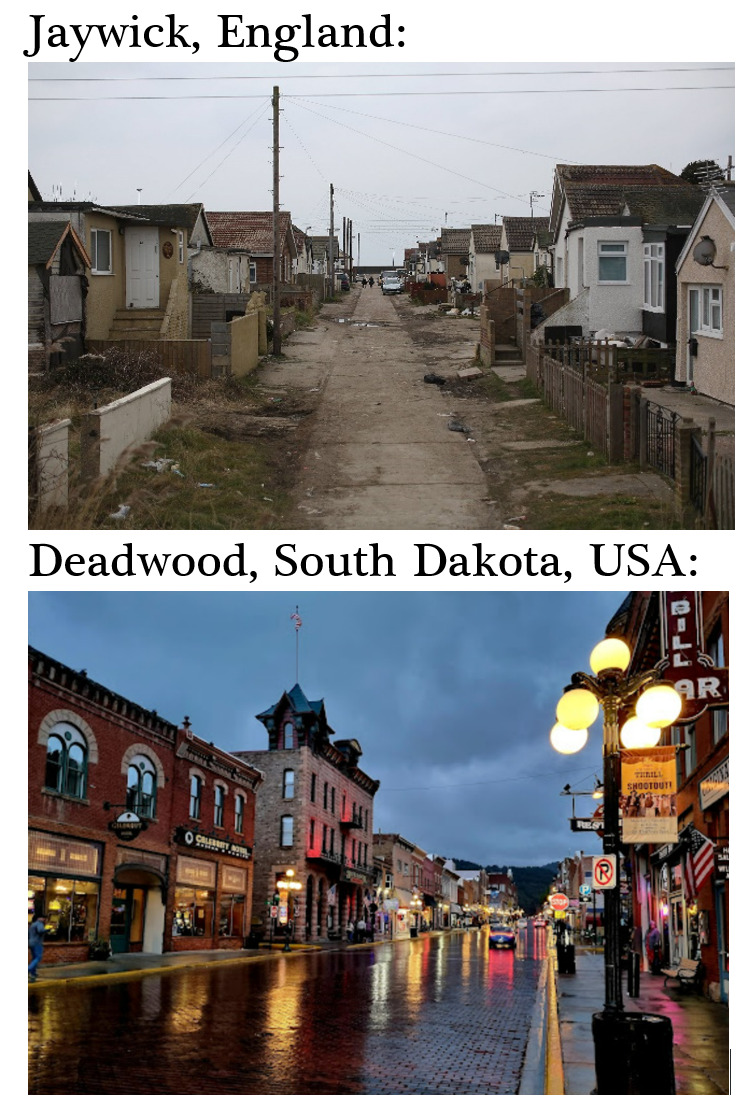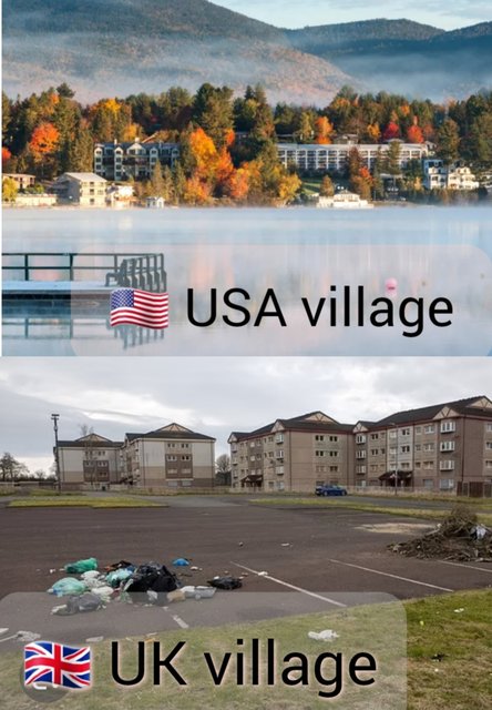 Sigh, now lets cherry-pick two more pics. One showing a cute US town and one of English council estates (public housing).