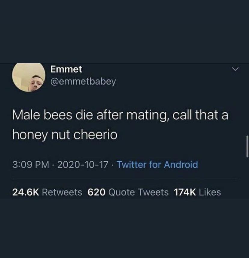 OMG! and when you think of it.....the actual cereal cheerios doesn'T have nuts in it....just honey glazed wheat circle things....and the spokes bee is male...and AHHH my childhood....
