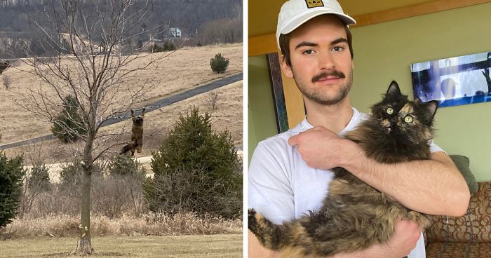 Load More Replies...Lol this happened to my cat as well. Except the tree was higher. There was a pit bull below him but garages he could've jumped on to get his a*s back home. He learned a valuable lesson that day after being stuck for hours. Lesson was you never know what's behind the fence two houses down.