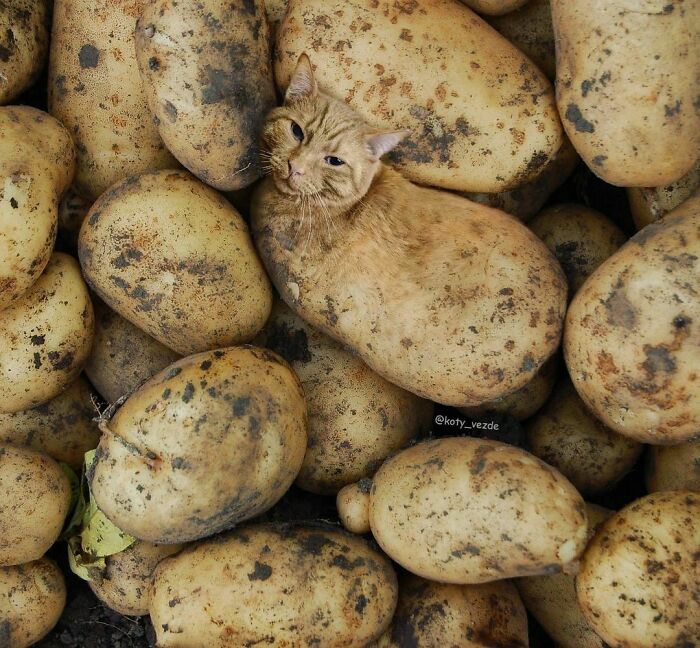 This surreal scenario is made real by this fluffy Instagram account known as “Koty Vezde” (“Cats Are Everywhere”). The page run by Galina Bugaevskaya is dedicated to sharing the most amusing photo manipulations of random animals and things with furry feline faces.