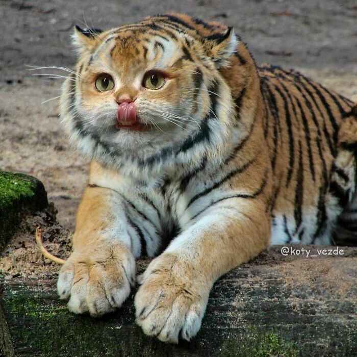 Think of animals like foxes and seals, giraffes and bats, but also inanimate objects like toothpaste, cupcakes, and croissants rocking a cat’s snout like no big deal. Below we wrapped up a new batch of imagined cat pics from Koty Vezde, so pull your seat closer.