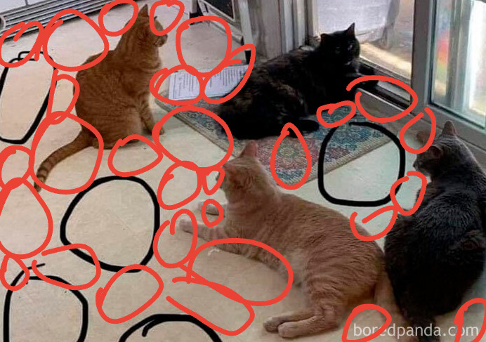 Once I saw,a cat in front of the block of flats. I made friends with the kitty, then a window was opened and an old woman screamed, asking what I was doing with her cat. Petting it, what else?