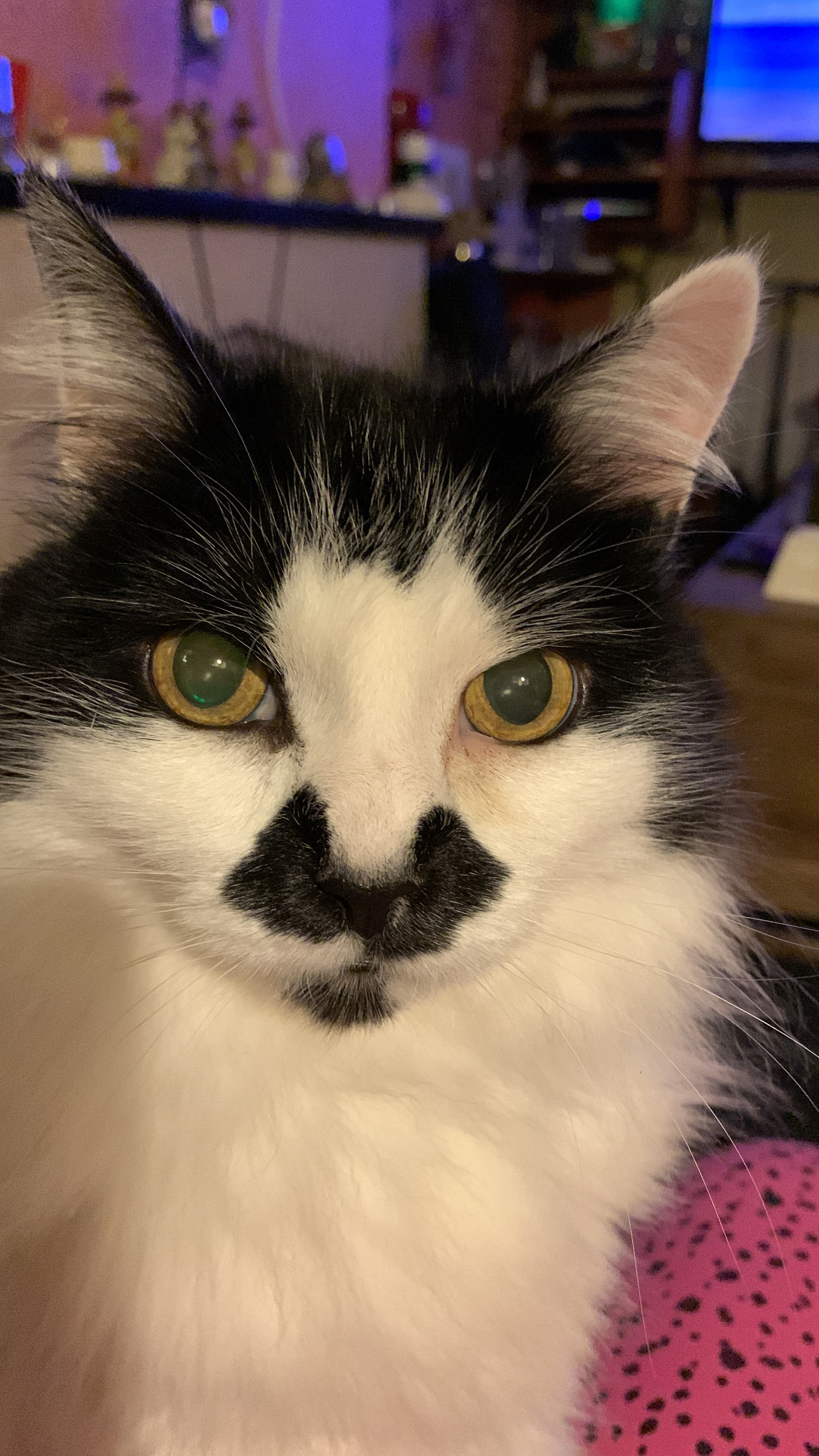 Photogenic cat posing humorously, embodying a funny and relatable meme moment.