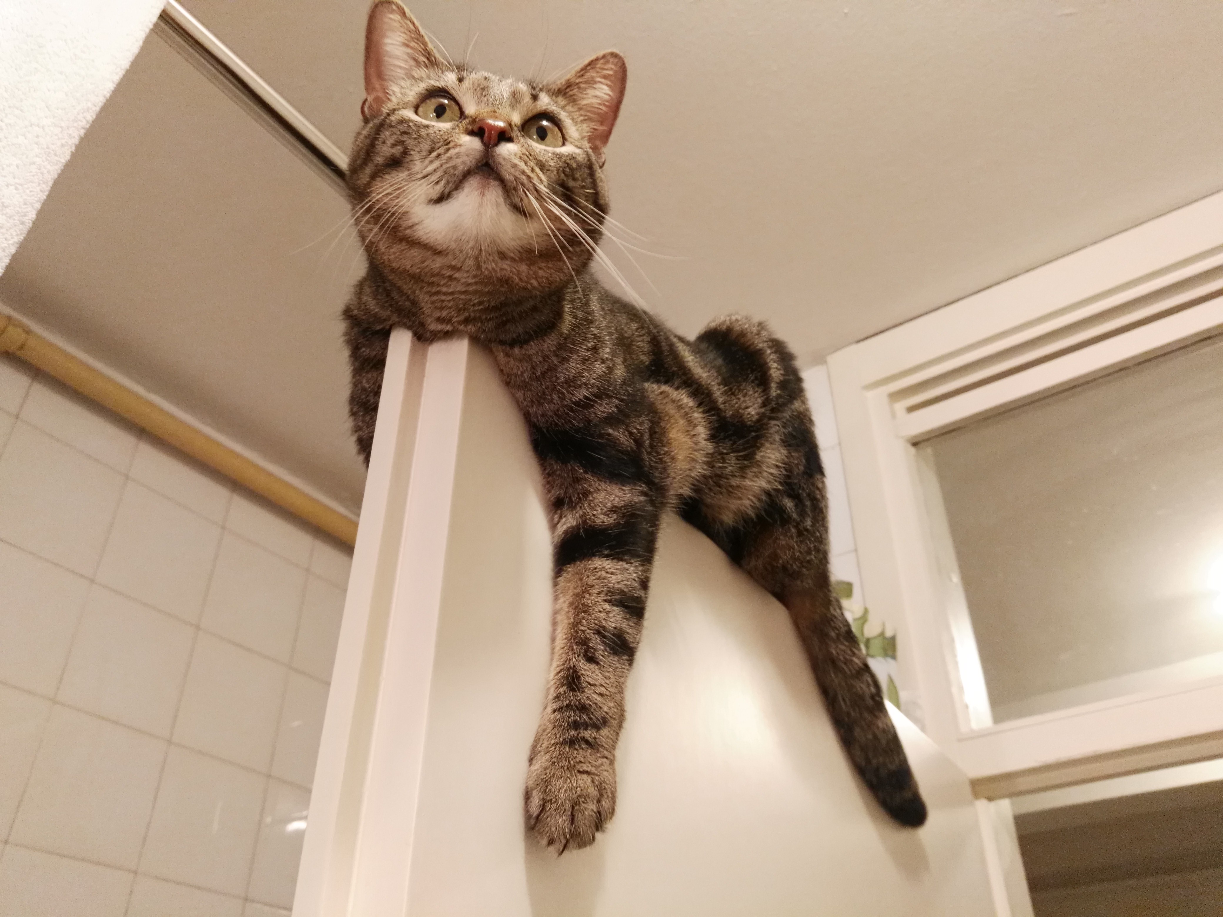 I think I'd pee on someone if I fell off the top of the fridge!! Not that I'm up there that often...