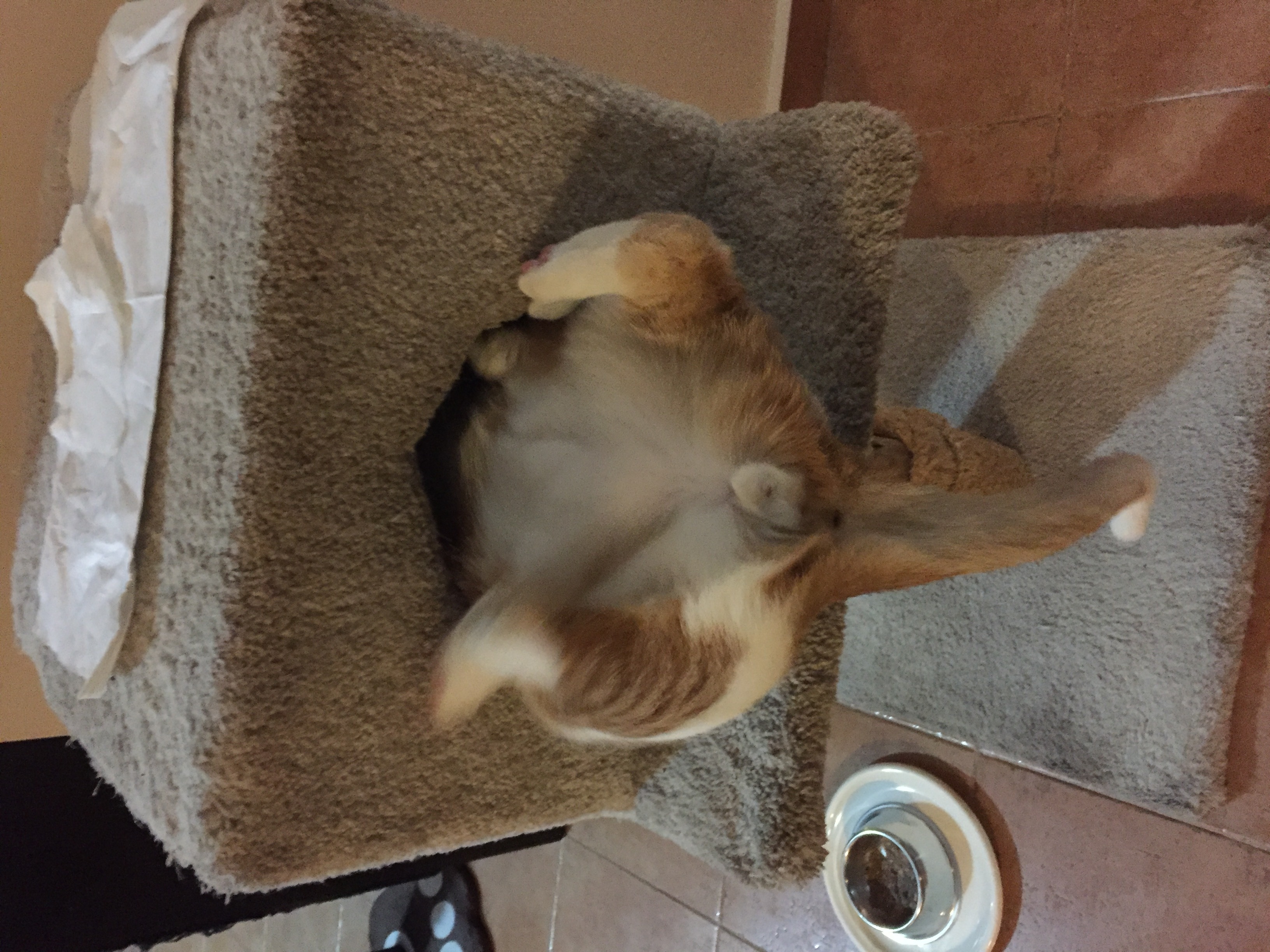 Put My Cat On A Timed Feeder To Try To Help Him Lose Some Weight. He Sleeps Like This Now