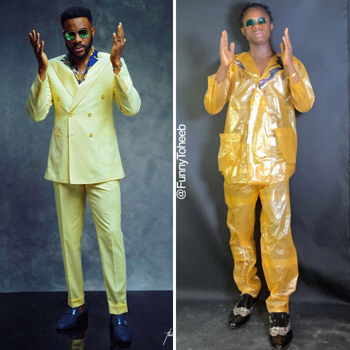 30 Hilarious Low-Cost Recreations Of Ridiculous Celebrity Outfits By Funny Toheeb (New Pics)