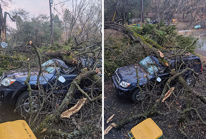 A Tree Came Through The Roof At 11 Pm Last Night During A Steady Rain With Massive Wind Gusts