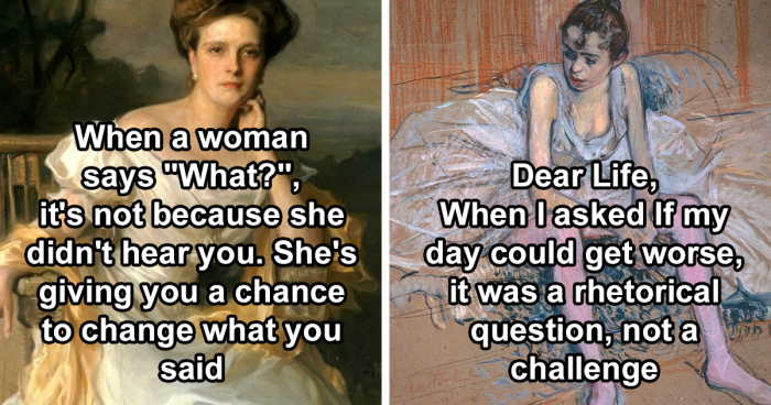 The “Classic Art Memes” Facebook group takes, well, classic paintings and art, and adds hilarious and relatable captions to them. We also reached out to Camille Katz, the founder and one of the moderators of the group. So scroll down, upvote your favorites, and comment on the most relatable captions you see.