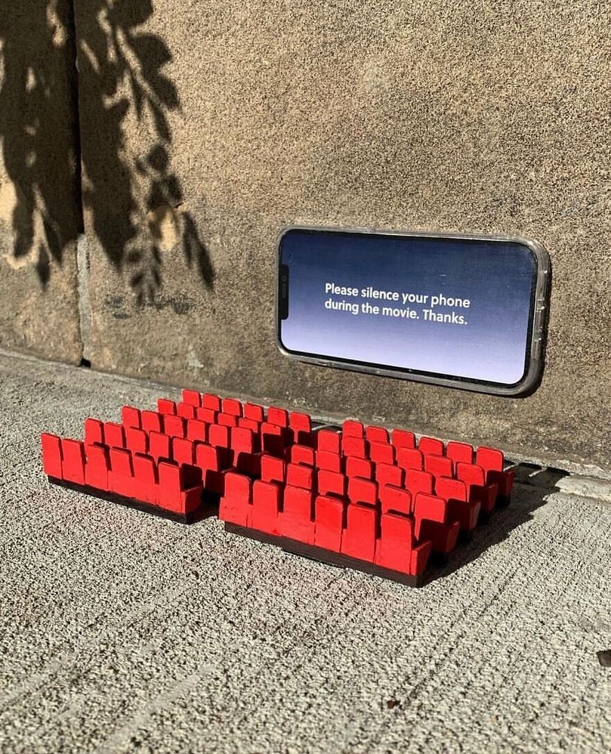 Drawing inspiration from social media and everyday life, Pederson’s work adds a layer of irony that enhances and enlivens the surrounding environment. His interventions in various urban locations, with their small yet potent messages, make for a rather thought-provoking experience for passersby. That being said, Michael's work has been previously featured on Bored Panda if you'd like to see some more of his tiny 'art projects.'