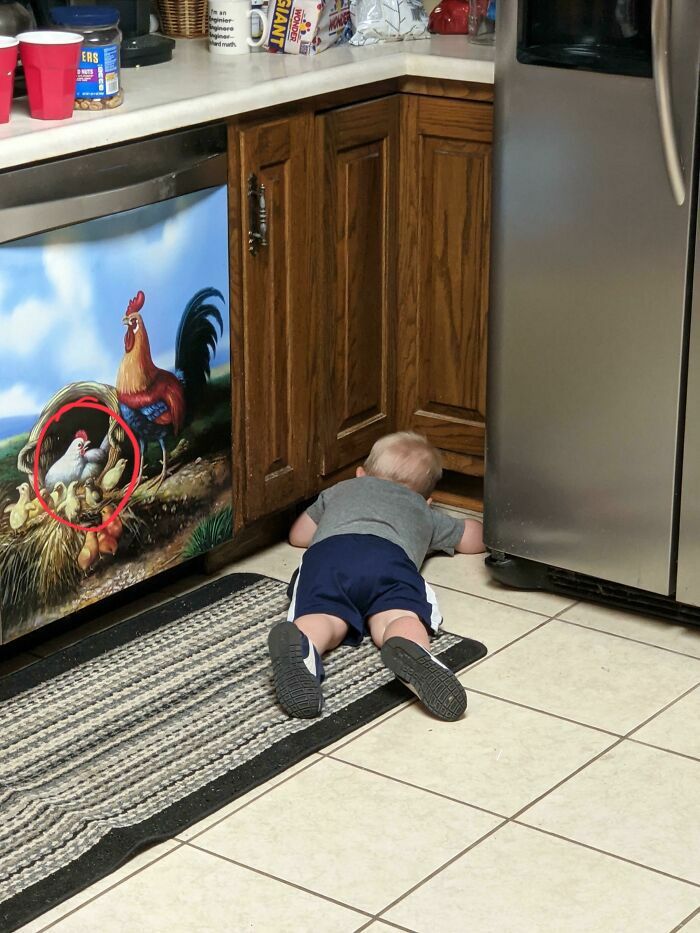 Load More Replies...Really?? The boy is right by the fridge and cabinets on the floor