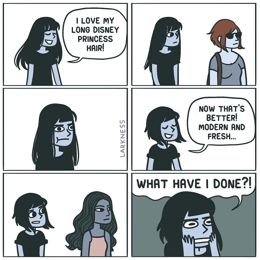 The age of classical comics confined to newspapers or little books is over, and the medium has exploded into many shapes and forms done by thousands of artists in their own special way. The newspaper cartoon has been replaced by a daily dose of a comic viewed through social media. The themes have also changed: instead of often tacky gags or some political commentary, most comic artists nowadays choose more down-to-earth and relatable topics like everyday life and inner struggles. Lark, or Larkness (Estela Ribeiro Kuntz), the hero of today's post, is one of those newer types of comic artist and even though she's never been published in a newspaper, her comics are enjoyed by thousands on the internet.