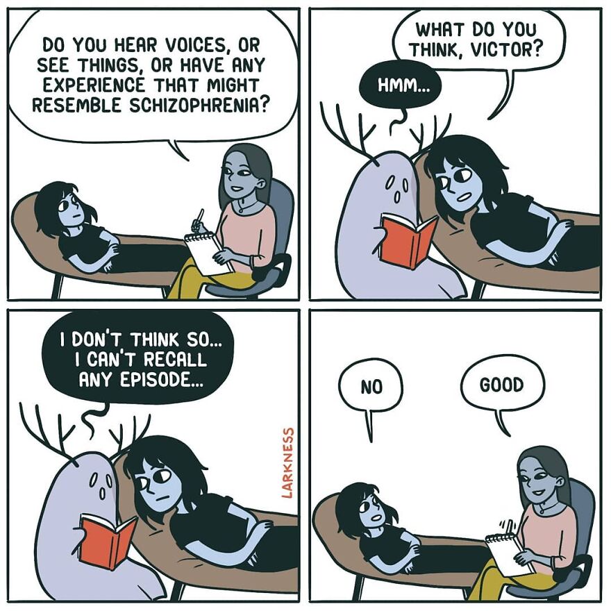 Larkness' comics are well-appreciated on Instagram and Facebook, and she has over 120k combined followers across the platforms. She's been a favorite of our readers, too. You can find a post done by none other than herself here. If you want to support her, there's a comic made by Larkness that explains just how to do so. If you're a Brazilian reader, you might be interested in her comic book called "How to deal with your ghosts." And also, as always, make sure you follow her on social media as that's one of the main ways to make it big in the comic world. Cheers!