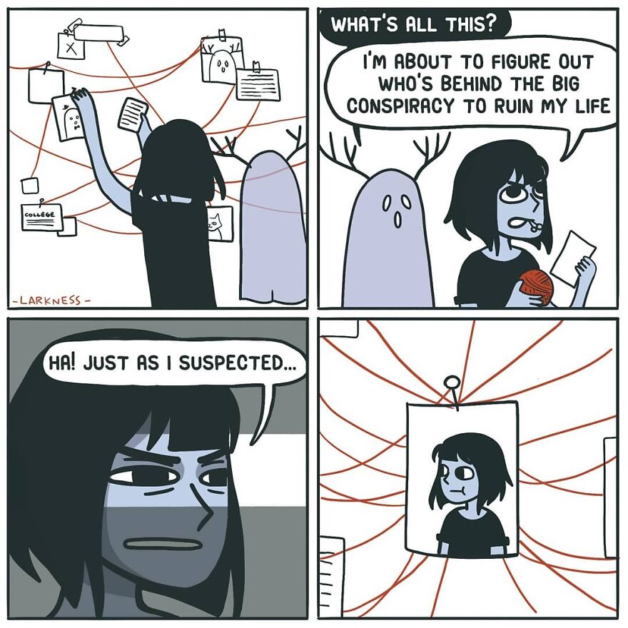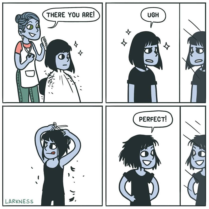 Larkness' comics embrace the dread of everyday life, the ups and downs, and all of the little moments in between. Lark, the main character, doesn't try to act as if she's in control of her life—sometimes her inner demons get the best of her; sometimes Lark wallows in self-pity, and there's many opportunities for her to have a laugh at her own expense. But it's not a bad thing. Human flaws are not just part of her comics, it's what makes them interesting, authentic, and relatable. And this is why I love them so much and find them endearing.