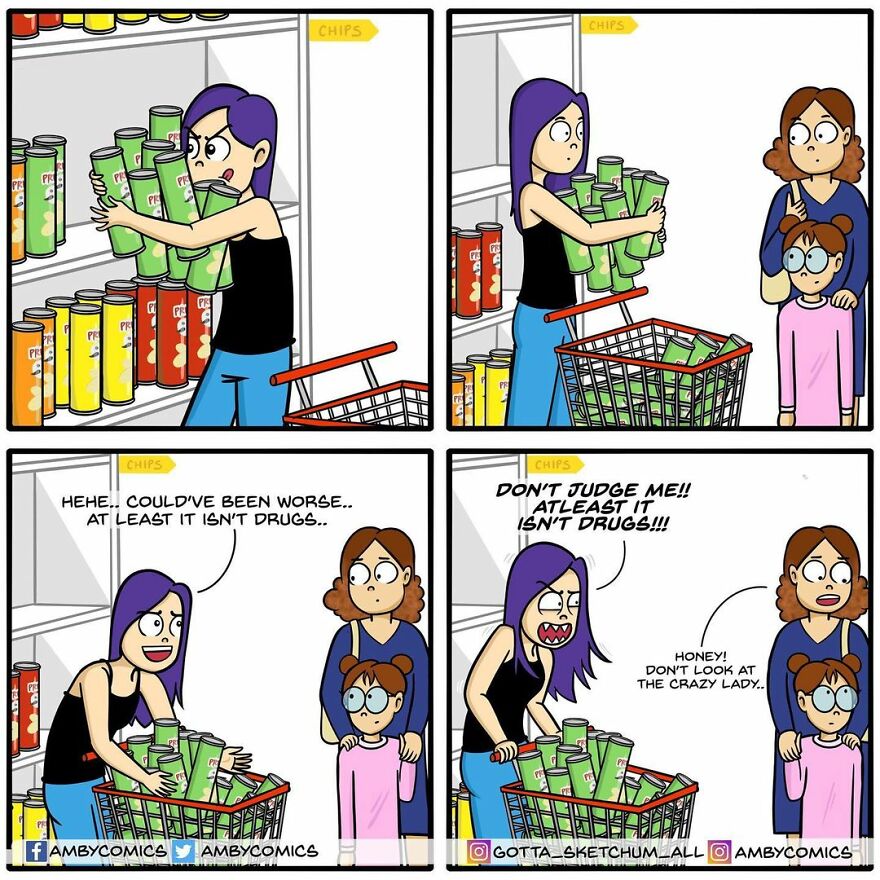 Amby makes funny yet relatable comics about her everyday life, experiences, her mom, and even her long-distance relationship with her boyfriend. Vaingankar has been making comics for over four years now and has accumulated over 129k Instagram followers.