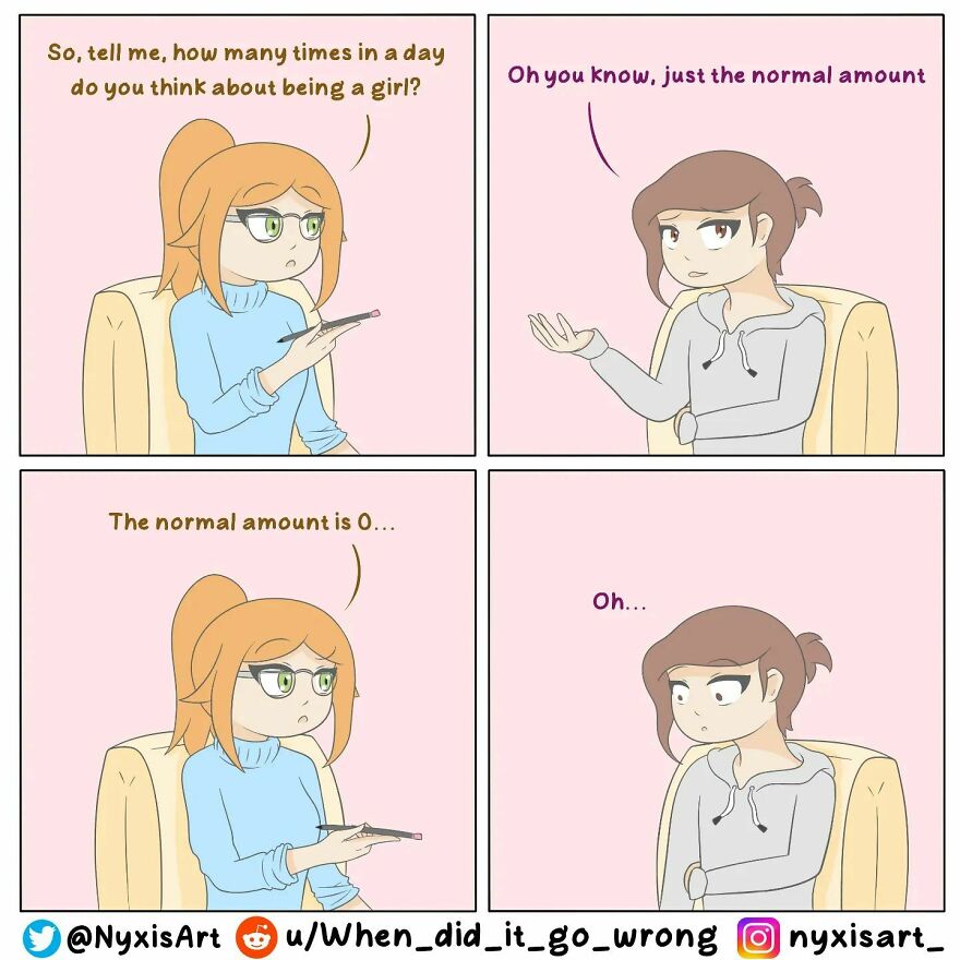 I guess this is one of the hardest things for me to understand. I've never even thought about being a man; I just am and always have been. That must really suck.