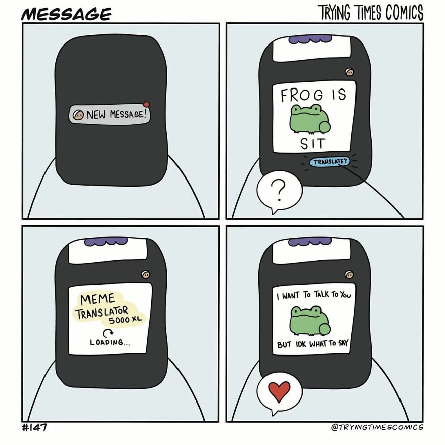 In a previous interview with Bored Panda, when asked how the artist would describe Trying Times Comics to someone who isn't familiar with it, the artist said this: "Trying Times Comics is about nerd life, relationships, and these trying times. That's kinda the tagline I'm going with at least. But more specifically it's about my personal interests, conversations/situations I have with my wife and friends (and cat), and whatever else is going on around me."
