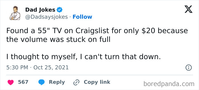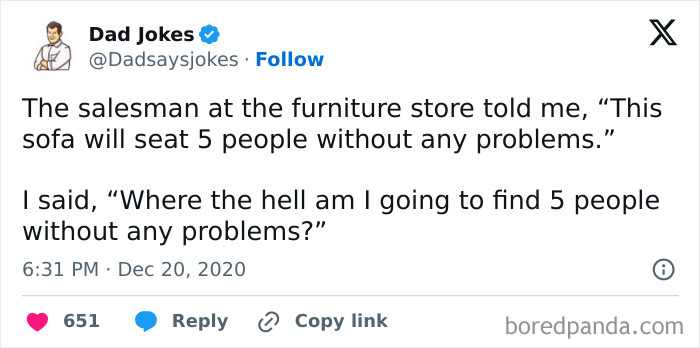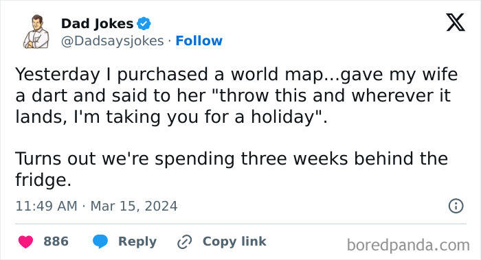 If you’re a fan of dad humor yourself, you’re in the right place, as today’s list is all about that. (If you’re not, you might want to browse our category of all sorts of funny things to find something that suits your preferences better.) Upon scrolling down, you will find some of the funniest dad jokes the internet has been blessed with that ought to make you giggle at least a little; or a lot. So, what are you waiting for? Go on, start scrolling now!