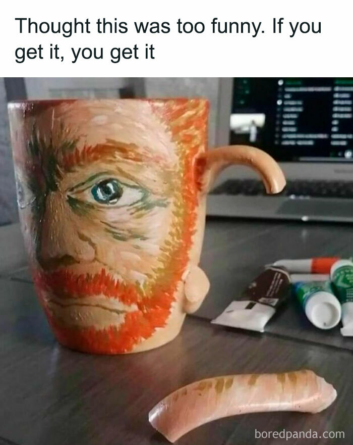 For those who don't understand the joke: some people, Americans in particular, mis-pronounce the name Van Gogh as "Van Go". That's not me ruining the joke by "correcting the pronunciation", it's me explaining the joke to those who don't get it because they've never heard that particular error - I didn't know about the US way of saying the name wrong until a few years ago. Being a mono-lingual Englishman, I know I can't pronouce "Van Gogh" correctly, but at least I don't totally ignore the second consonant.
