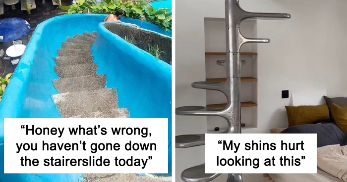 Honestly, it takes some talent and creativity to make stairs that are as unsafe as some of the masterpieces on this list. Some seem downright uncomfortable while others present clear tripping hazards or even fool the eyes into hiding individual steps. Let us know which ones you think you’d trip on in the comments.