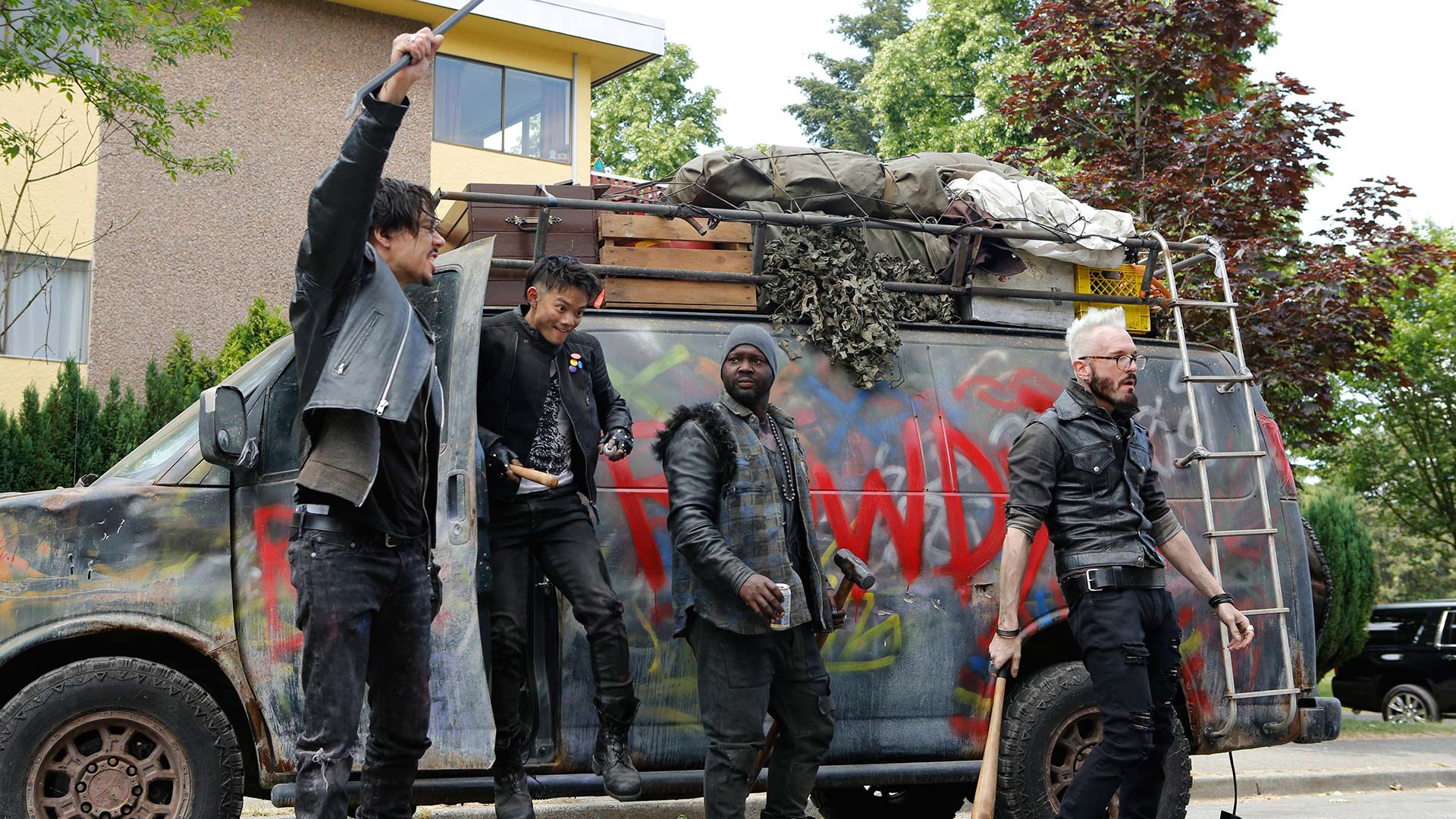 They rotate 90 degree and get off by rolling onto the sidewalk?