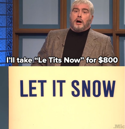 I just had a vision of Sean Connery on SNL Jeopardy: "I'll take LE TITS NOW for $500, Alex."