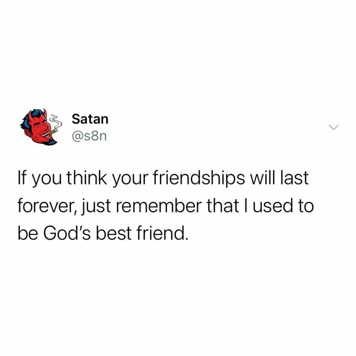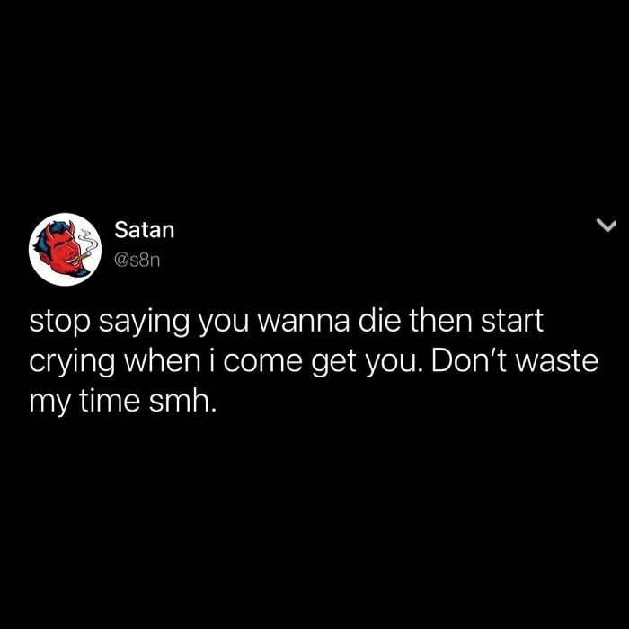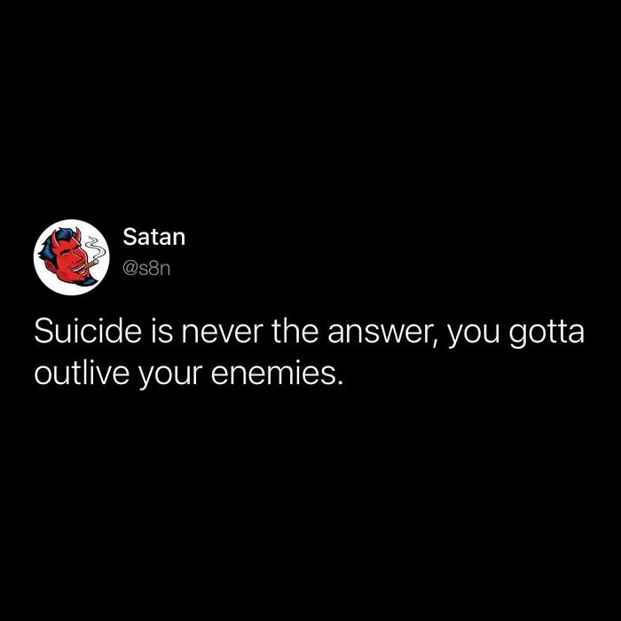 Many of us enjoy dark humor but sometimes think that we might go to hell for laughing at something. As it turns out, the Devil himself has a soft spot for comedy, too. He shares funny and biting one-liners about current events on the 's8n' Instagram account. The sassy insults from God's biggest rival have been gaining huge popularity among us mortals.