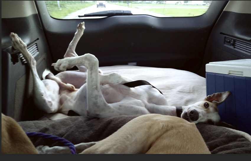 He fell asleep in the trunk of the car looking up at me in the back seat.