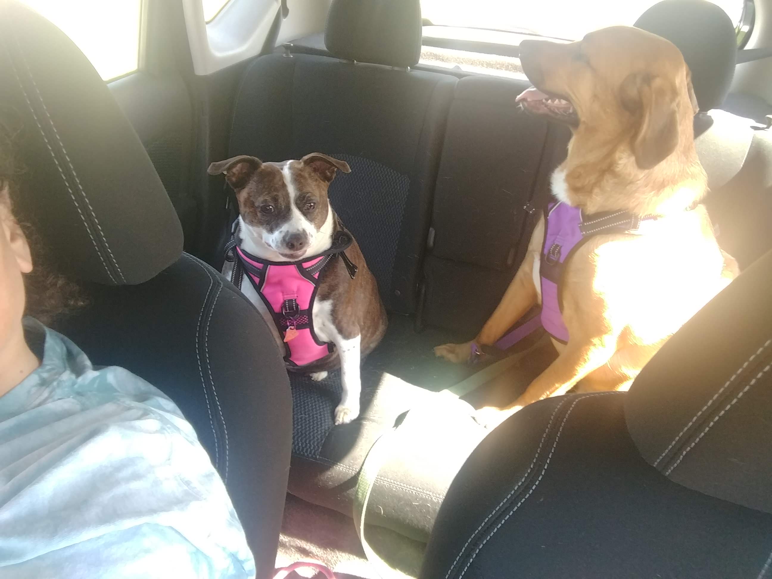 Arrived at my destination, then turned around to check on my dog who was sitting in the back seat.