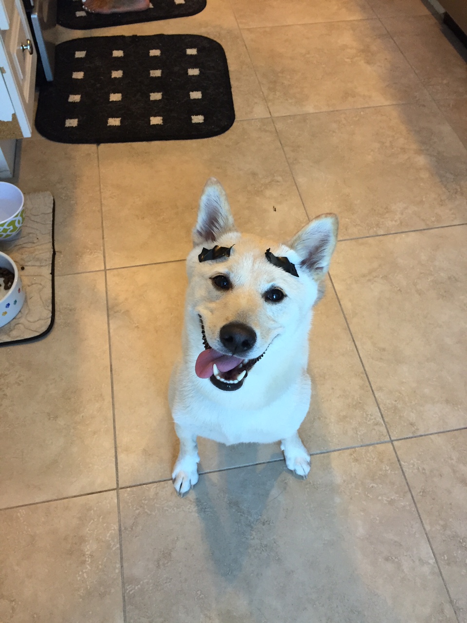 My Neighbor's Dog Stops by Sometimes. We Drew Eyebrows on Him This Time