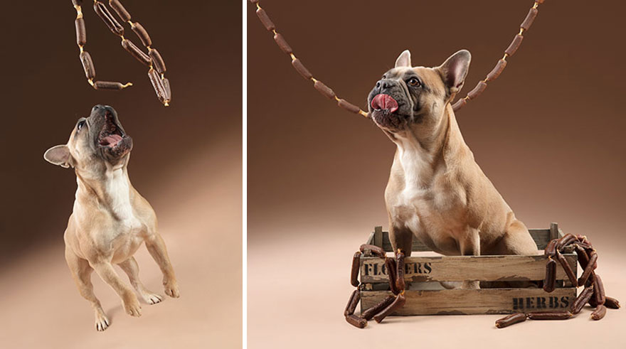 I have to give a huge applause to this dog. Having to combine the command to wait and getting that sausage to balance on her snout was a huge challenge but she pulled it off brilliantly. Those puppy eyes looking up at you waiting for the command to release. She definitely got an extra sausage for this shot.