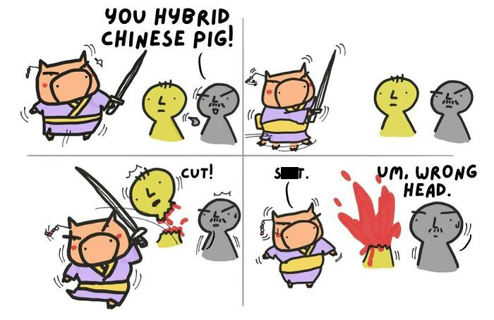 My parents constantly have remarks and behaviors that are unexpected. I decided to capture them through my pig comics as well as my other adventures. Gray pig is my dad and pink is my mom.