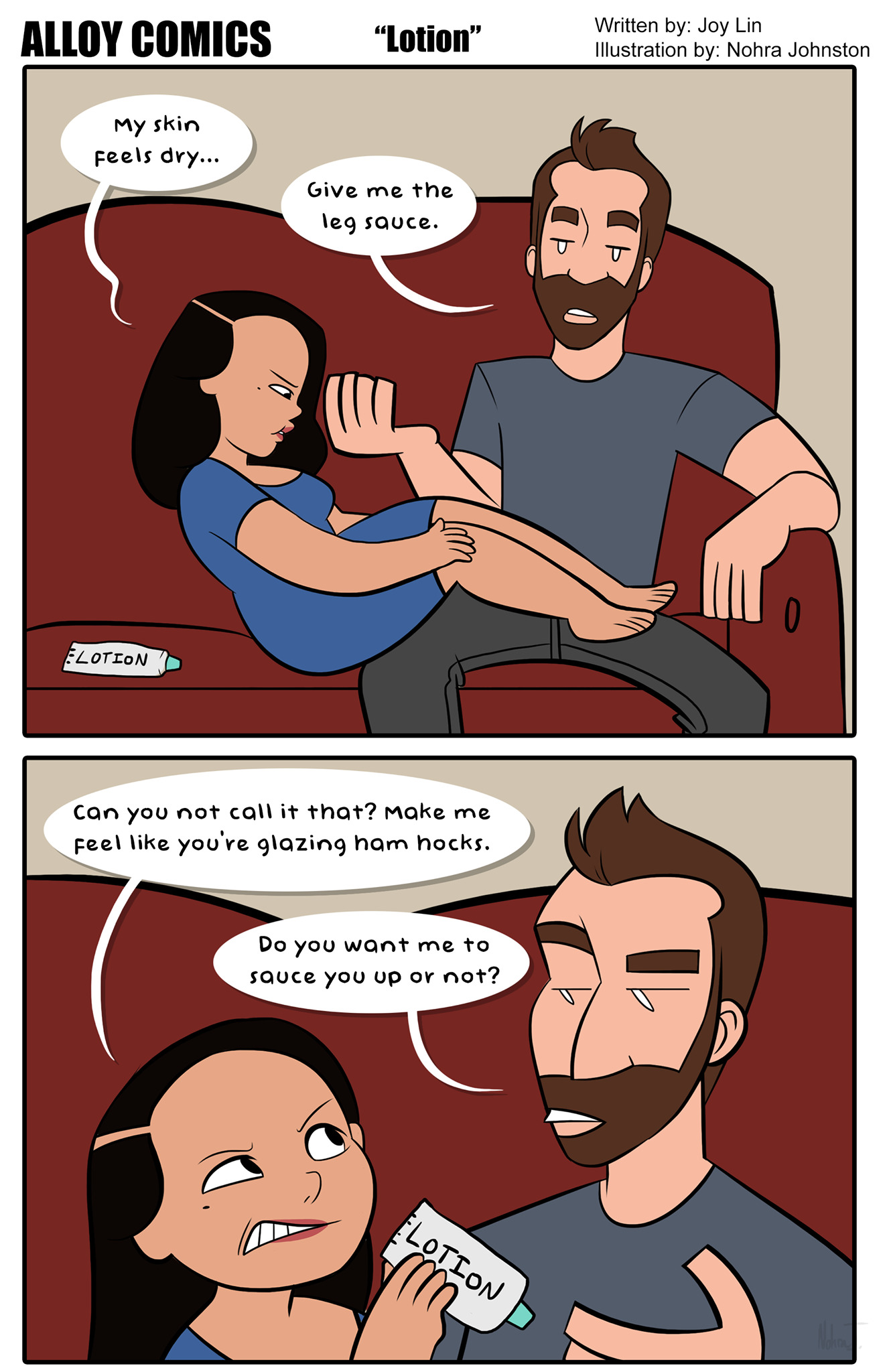 I'm actually quite surprised we haven't met anyone who's said anything negative about Alloy Comics...yet! Most people find our comics adorable. Some people question if we really talk to each other like that. The answer is yes, we certainly do. There is no exaggeration here. Alloy Comics is my life. My favorite part of the creative process is when Nohra does all the hard work and sends me the comic on Friday night. Hahaha!