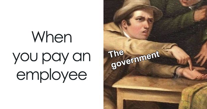 Someone online created a series of hilarious memes to illustrate the argument of how the government can tax people to death, using an old fashioned painting and photoshop and some people are finding them hilariously relatable.