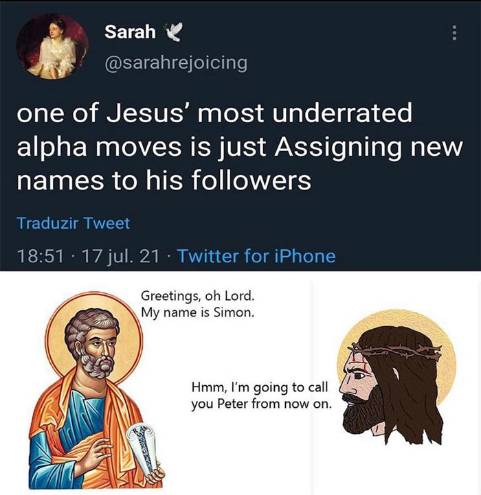 Peter meant "rock" dude hauled a net full of fish onto land that was too heavy to lift into the boat. Peter was probably pretty buff. Basically Peter was The Rock before The Rock was.