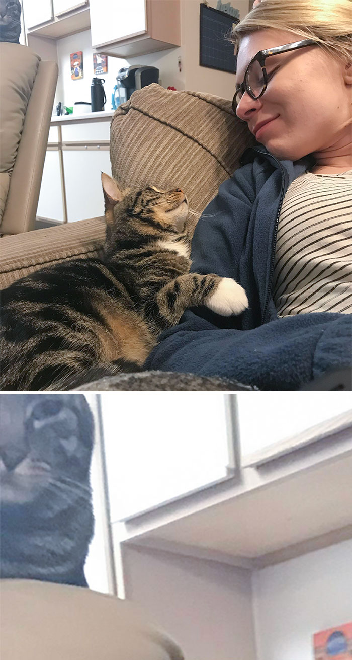 Someone Got Jealous That Her Sister Was Laying In My Lap Then Proceeded To Physically Push Her Out Of The Spot
