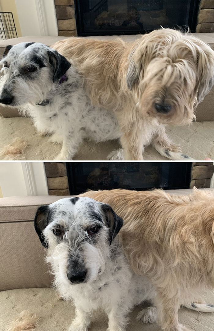 That picture on the bottom left... Three other dog's expression never changes tho.
