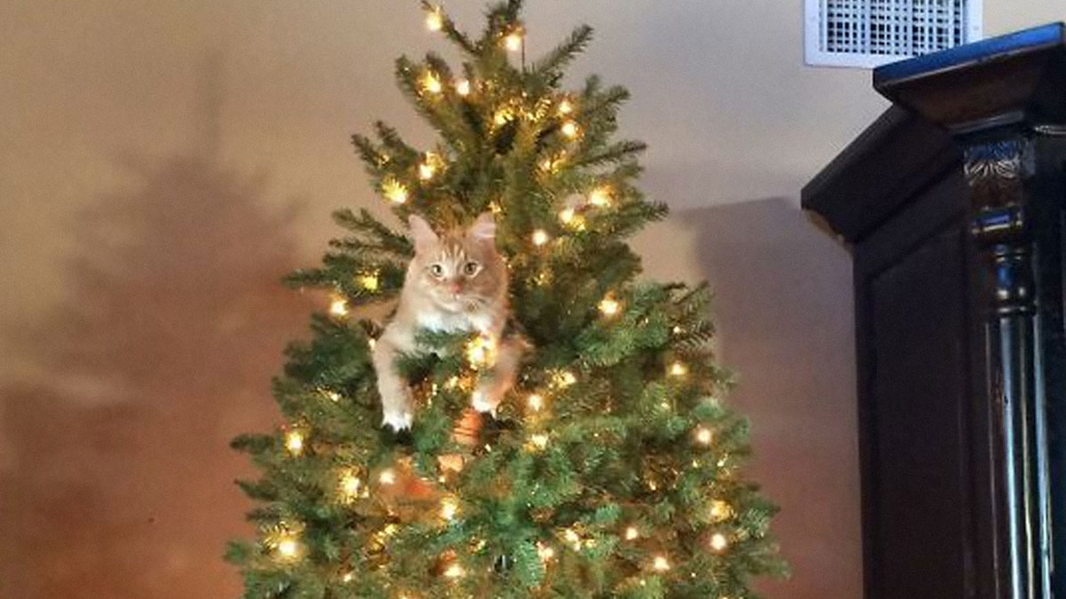 I'd be more concerned if a cat didn't want to climb the tree that was sitting right in the living room with all those shiny things dangling from it.