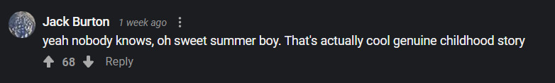 yeah nobody knows, oh sweet summer boy. That's actually cool genuine childhood story