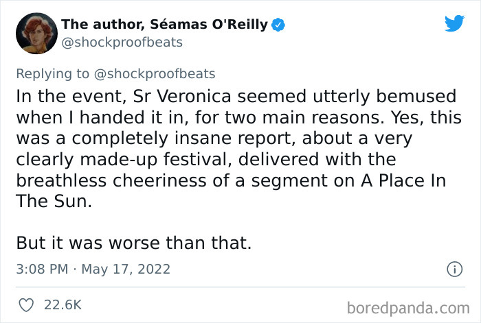 Recently, author and columnist Séamas O'Reilly shared a wild story about how he got caught in an elaborate lie as a child