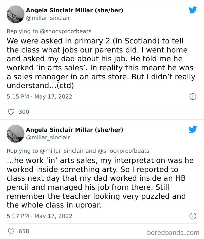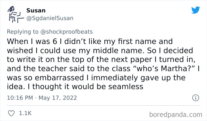 Load More Replies...When I was 5 and about to start kindergarten, the teachers mailed out a packet to the parents which included a badge with a number on it for the parents to pin to their kids. It designated which of the two classrooms the kids would go to. My best friend and I were disappointed because we had different numbers, but we wanted to be in the same class. Then one day while we were playing outside, we found a piece of paper with the number "2" on it which was my friends class. We decided that I would pin this piece of paper to my dress and they would let me into her class! Problem solved... or so I thought. I can still feel the embarrassment I experienced as I stood in that doorway and realized that the teachers knew what I was trying to do and they were amused by it!