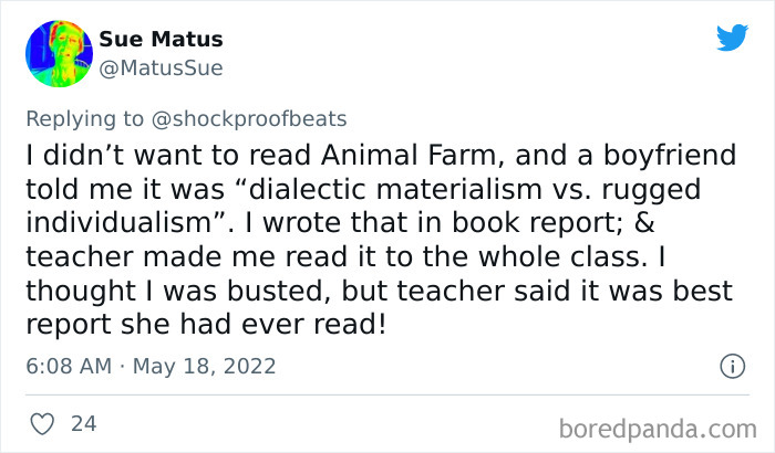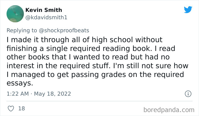 You missed out! Not all the books in school were worth reading but there were a lot of good books that I learned a lot from.