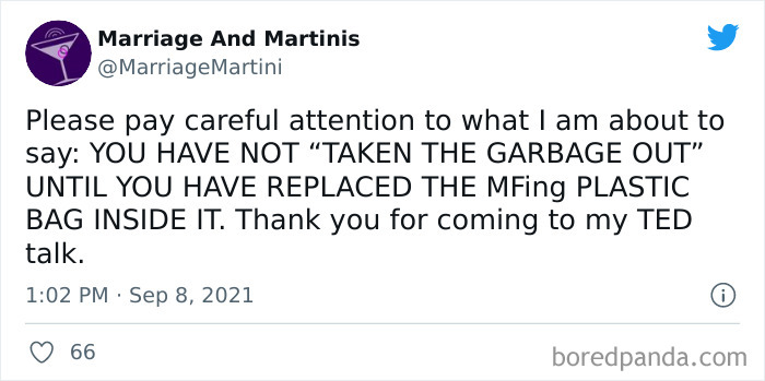 Also, if you take the last of the toilet paper, put the new roll on the spindle, don’t just leave the roll on top of the toilet tank!