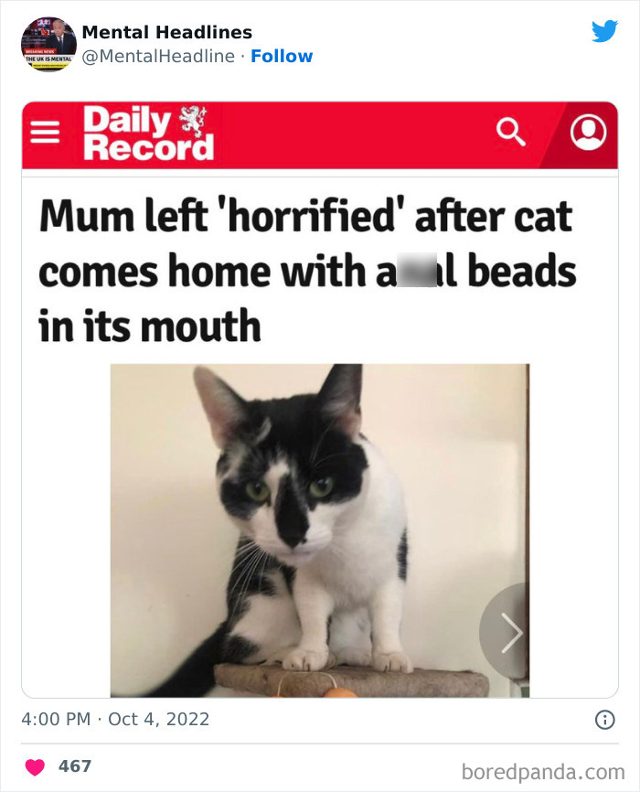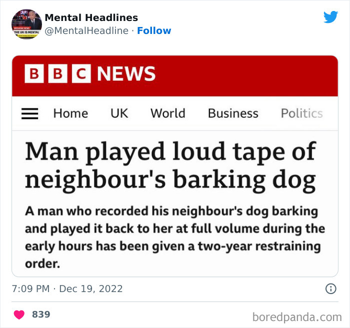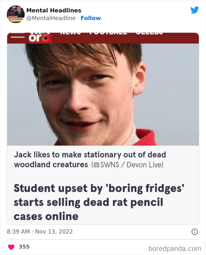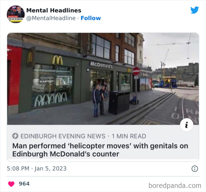 The Twitter page “Mental Headlines” is clearly aware of that and has set out on a mission to document the most absurdly funny and downright odd headlines spotted in media that take entertainment onto a whole new meta level.