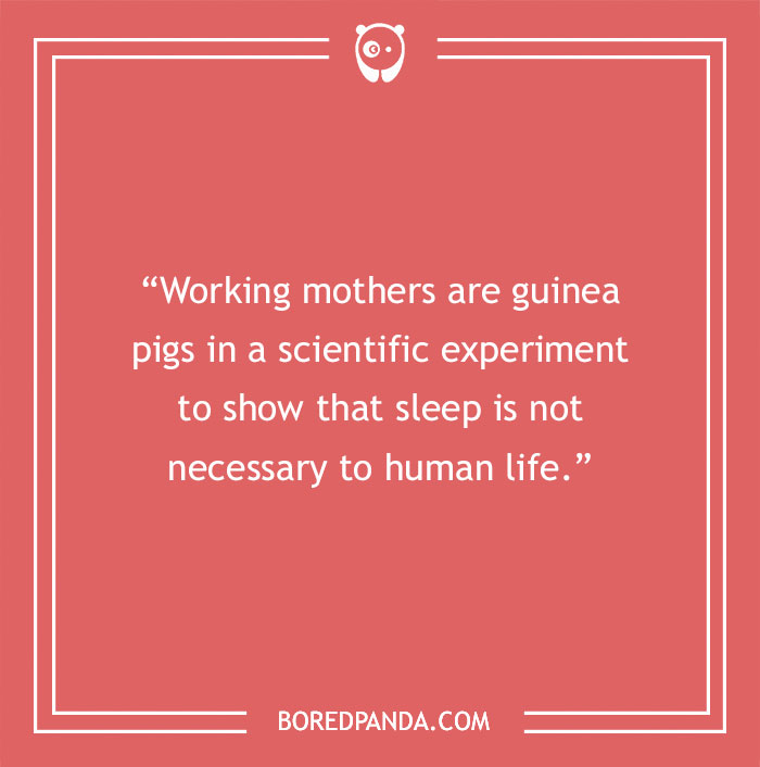 “Working mothers are guinea pigs in a scientific experiment to show that sleep is not necessary to human life.”