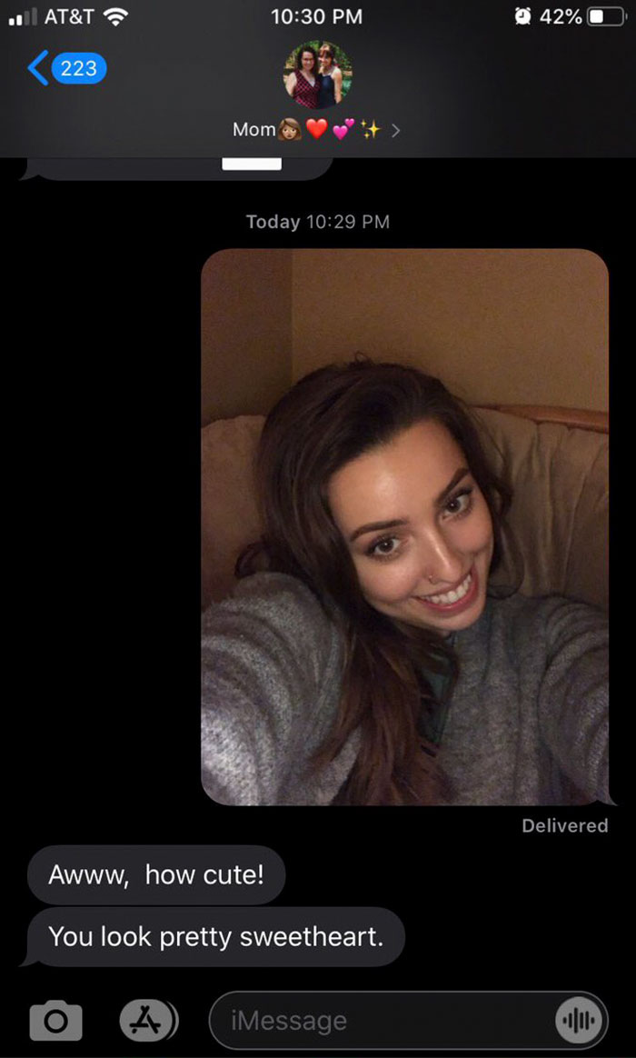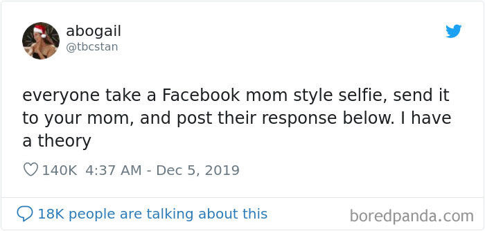 She started a Twitter thread where she invited people to take “Facebook mom style” selfies, send them to their moms, and then post their responses. As you could have probably expected, a lot of people took Abigail up on her suggestion, the thread went viral, and the replies were wholesome and heart-warming. Except for a few surprising responses that made us chuckle.