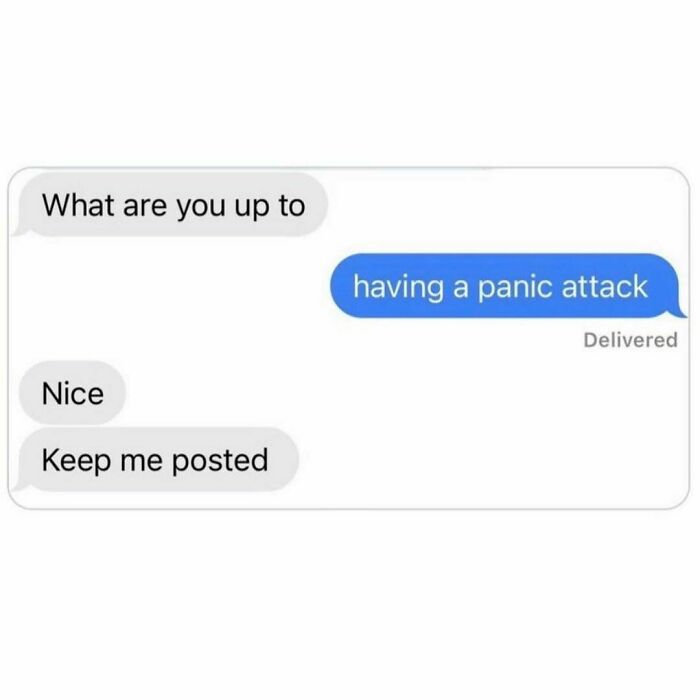 "Mental health issues are often wrapped in shame," Arzt told Bored Panda. "That shame often says, 'I'm alone in this. Nobody else understands. Something is deeply wrong with me.' While memes don't exactly 'fix' that real pain, they can provide a sense of shared camaraderie. There's such a powerful validation in just knowing you're not alone and that your struggles are not solely yours."