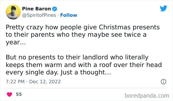 I Considered Eviction, But Since Its So Close To Christmas I've Decided To Have A Heart And Just Shut Off The Heating And Water Supply, As Well As Increasing The Rent By 25%. Merry Crimbo Rentoids